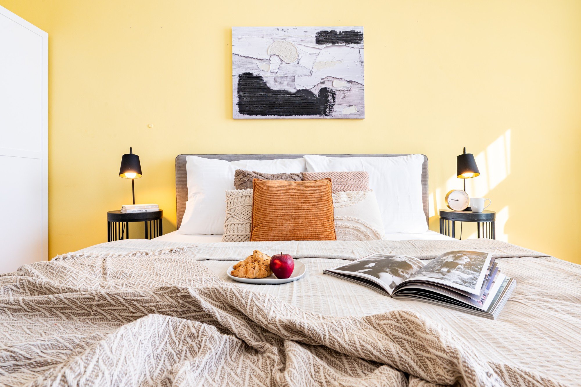 Mieszkanie przeznaczone na najem krótkoterminowy przeszło metamorfozę, której celem było stworzenie funkcjonalnego, przytulnego i jednolitego wizualnie wnętrza. Kluczową rolę w projekcie odegrały kolory, które pomogły połączyć istniejące wyposażenie z nowymi elementami i dodać wnętrzu charakteru. Wyrazisty kolor ścian w sypialni stał się naturalną częścią całości i podkreślił atmosferę, w której goście mają poczuć się jak w domu.