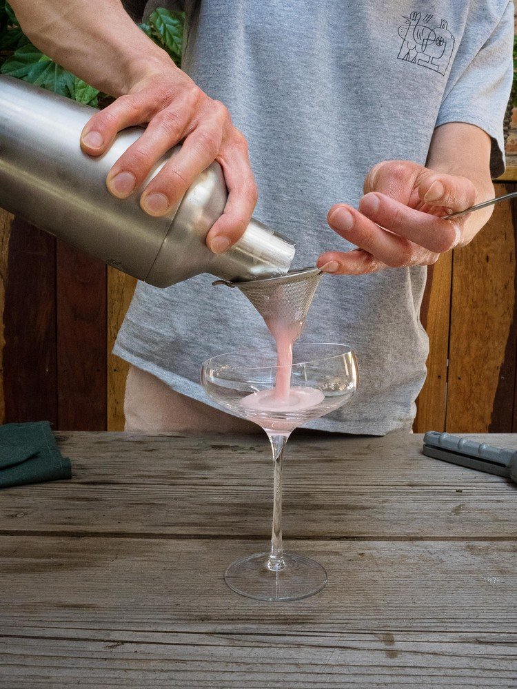 Odcedź przez drobne sitko do płytkiego kieliszka, np. kieliszka do szampana.