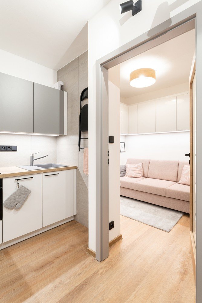 Nawet z miniaturowego, dwupokojowego mieszkania z aneksem projektantom udało się w stworzyć trzy sypialnie. Osiągnęli to, budując ścianę w części kuchennej oraz części dziennej.