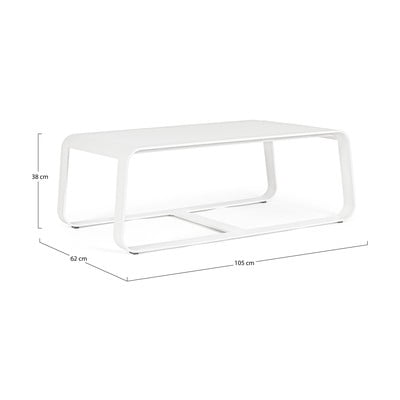 Aluminiowy stolik ogrodowy Merrigan marki Bizzotto wniesie ponadczasową elegancję na Twój taras. Jego minimalistyczny design z czystymi liniami i białym wykończeniem z łatwością łączy się z różnymi stylami mebli ogrodowych. Stolik o wymiarach 62 x 105 cm zapewnia dużo miejsca na przekąski i dekoracje, a dzięki wytrzymałej aluminiowej ramie będzie służył przez wiele sezonów.