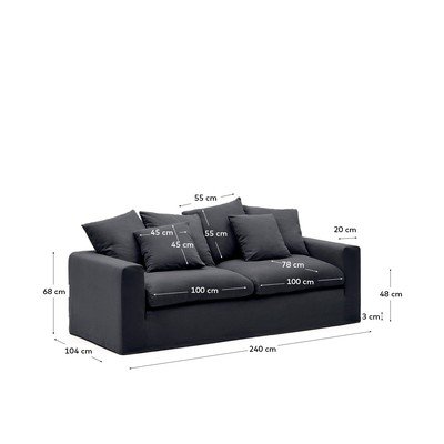 Antracytowa lniana sofa 240 cm Nora – Kave Home