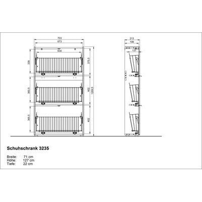 UchylnaZ płyty wiórowejPowłoka: melaminaAntracytowaLiczba par butów 9 Szerokość 71 cmWysokość 127 cmGłębokość 22 cm