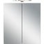 Szafka wyposażona jest w dwie szklane półki o nośności do 1 kg oraz dolną półkę o nośności do 10 kg. Pośrodku znajduje się kontakt i włącznik światła. Zawiera oświetlenie LED o wymiarach 30 x 5 x 9,5 cm z neutralnym białym światłem.