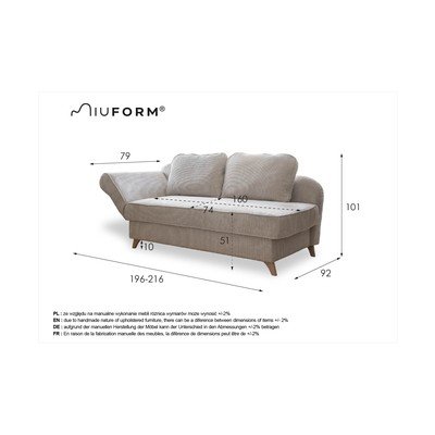 Lewostronny, sztruksowy, antracytowy, szerokość 216 cm, głębokość 92 cm, waga 62 kg