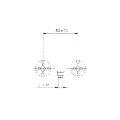 Mosiężna bateria ścienna z tradycyjnymi kurkami zachwyca swoim retro designem. Wylewka jest obrotowa. Rozstaw przyłączy wody wynosi 150 mm.