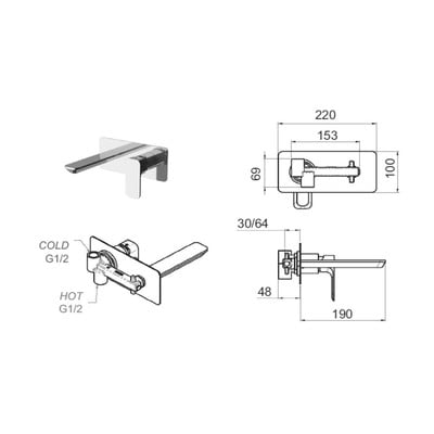 Mosiężna bateria z wylewką o długości 19 cm jest odpowiednia do uzupełnienia umywalek, które nie mają otworu do montażu baterii. W opakowaniu znajduje się również ukryty korpus potrzebny do instalacji.