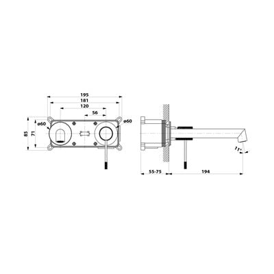 Dwuelementowa mosiężna bateria świetnie sprawdzi się jako uzupełnienie umywalek, które nie mają otworu do montażu baterii. Jest wyposażona we wkład o średnicy 25 mm.