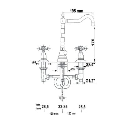 Trzyelementowa bateria umywalkowa z klasycznymi kurkami, która zachwyca stylem retro. Posiada przyłącze G 1/2". Ponadto w zestawie znajduje się elastyczny wężyk doprowadzający wodę, zamykany korek oraz oznaczenia ciepłej i zimnej wody w języku czeskim i angielskim.