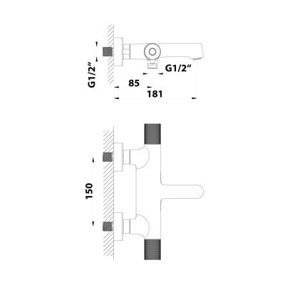 WannowaMosiężnaŚciennaZ termostatemW kolorze matowej czerni2 otwory