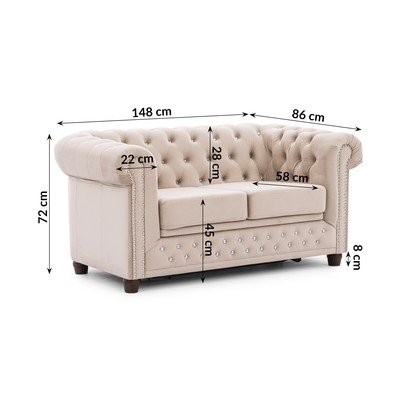 AksamitnaRozkładanaTypu chesterfieldBeżowaWodoodporna/plamoodpornaDwuosobowaSzerokość 148 cm