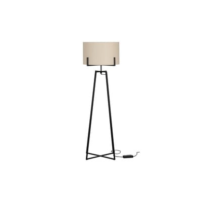 Lampa podłogowa Holly holenderskiej marki WOOOD składa się z czarnej, matowej metalowej podstawy i półprzezroczystego klosza wykonanego z połączenia bawełny (55%) i terylenu (45%).