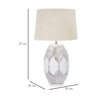 Z tekstylnym kloszem, z żywicy polimerowej, do kontaktu, biała/beżowa, wysokość 67 cm