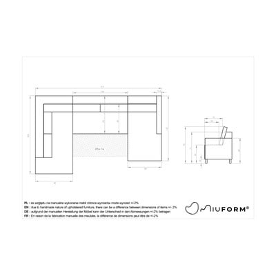 Sofa ma schowek i można ją rozłożyć. Może więc służyć jako łóżko dla gości. Ciesz się komfortem z marką Miuform.