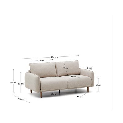 Dla zapewnienia wygody, sofa wypełniona jest włóknami z recyklingu PET. Posiada zaokrąglone podłokietniki i stoi na drewnianych nóżkach, co nadaje jej lekki i nowoczesny charakter.