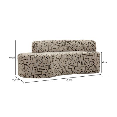 Z materiału bouclé, beżowa, trzyosobowa, szerokość 176 cm