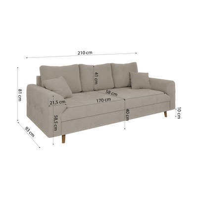 Z materiału bouclé, beżowa, trzyosobowa, szerokość 210 cm