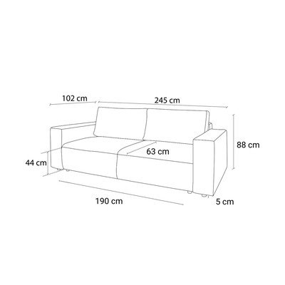 Szeroka, nieco twardsza sofa, mogłaby mieć głębsze siedzisko, ewentualnie cieńsze poduszki. Wizualnie bardzo ładna.