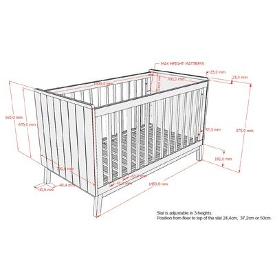 Łóżeczko Sezane70x140 cm, ze zdejmowanym bokiem/z regulowaną wysokością, ze stelażem, z litego drewna sosnowego, z płyty MDF, powłoka: barwienie, beżowe