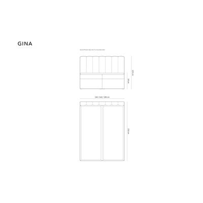 Aksamitne łóżko Gina ze schowkiem ma materac o grubości 16 cm oraz topper z pianki o grubości 4 cm i gęstości 25 kg/m³, który pozwala utrzymać materac w czystości.