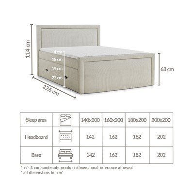 160x200 cm, ze schowkiem, tapicerowane, z materacem/z topperem, sztruksowe, beżowe