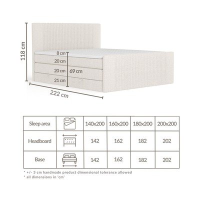 180x200 cmZe schowkiemTapicerowaneZ materacem/z topperemWykonane ręcznie/z łatwym montażemBeżowe