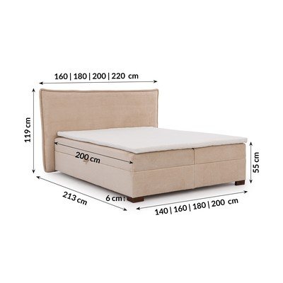 200x200 cm, ze schowkiem, tapicerowane, z materacem/z topperem, sztruksowe, beżowe