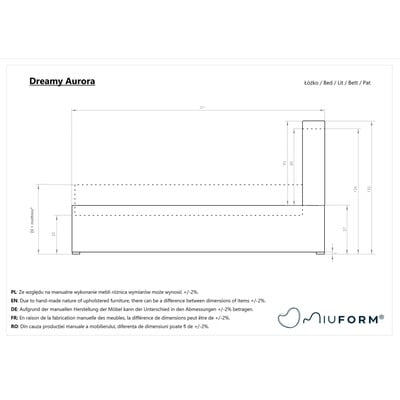 Dreamy Aurora tworzy geometryczny efekt w sypialni. Łatwy w czyszczeniu aksamitny materiał podkreśla miękkość formy i okazałość projektu. Wysokość oparcia i zastosowana pianka o wysokiej gęstości pozwalają na wygodny odpoczynek nawet w pozycji siedzącej. Pod ramą znajduje się duży schowek, który jest łatwo dostępny dzięki zastosowaniu podnośnika pneumatycznego.