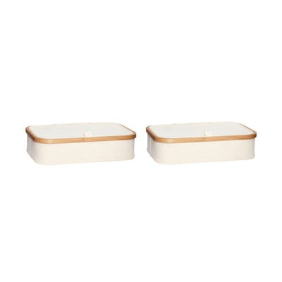 Pojemniki zestaw Ecru2 szt., z pokrywką, tekstylne, beżowe, 38x26x9 cm