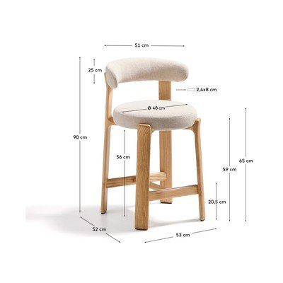 Z litego drewna jesionowegoZ szeniluBeżowy/w jasnym naturalnym kolorzeWysokość siedziska 65 cm