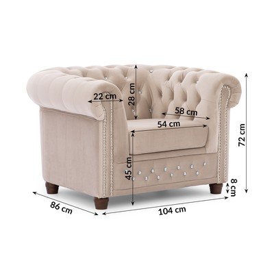 Beżowy aksamitny fotel typu chesterfield York Blik – Ropez
