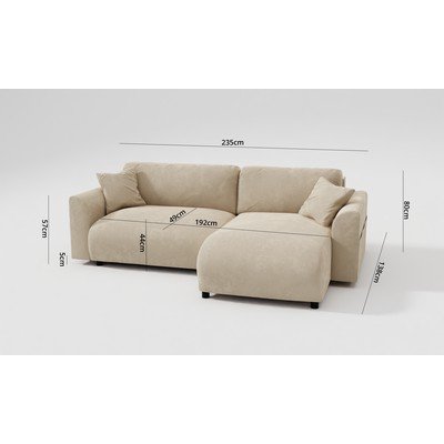 AksamitnyRozkładany/ze schowkiemPrawostronny/lewostronny/strona zmienna/z szezlongiemBeżowyTrzyosobowySzerokość 235 cm