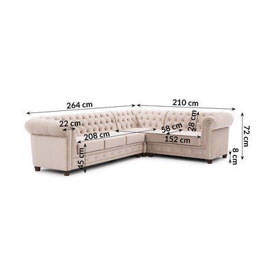 AksamitnyRozkładanyTypu chesterfieldPrawostronny/w kształcie litery LBeżowyWodoodporny/plamoodpornyCzteroosobowySzerokość 264 cm