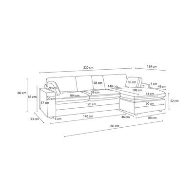 Prawostronny/lewostronny/strona zmienna/z szezlongiem, beżowy, trzyosobowy, szerokość 220 cm