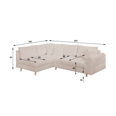 Z materiału bouclé, lewostronny/w kształcie litery L, beżowy, trzyosobowy, szerokość 231 cm