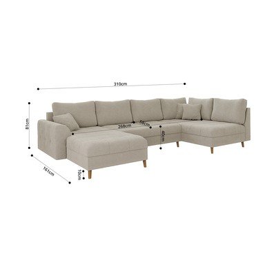 Z materiału bouclé, lewostronny/w kształcie litery U, beżowy, powyżej 4 osób, szerokość 310 cm