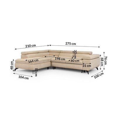 Z tkaniny szenilowejCzęściowo rozkładany/rozkładany/ze schowkiemLewostronny/w kształcie litery LBeżowyOdpowiedni dla zwierząt domowych/plamoodpornyCzteroosobowySzerokość 275 cm