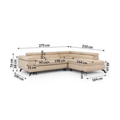 Z tkaniny szenilowejCzęściowo rozkładany/rozkładany/ze schowkiemPrawostronny/w kształcie litery LBeżowyOdpowiedni dla zwierząt domowych/plamoodpornyCzteroosobowySzerokość 275 cm