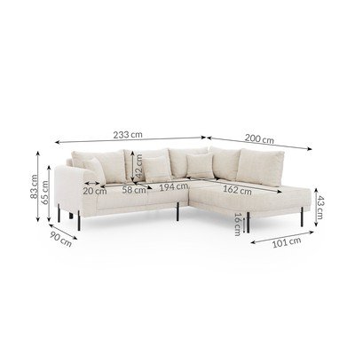 Z tkaniny szenilowejPrawostronny/w kształcie litery LBeżowyOdpowiedni dla zwierząt domowych/plamoodpornyCzteroosobowySzerokość 233 cm