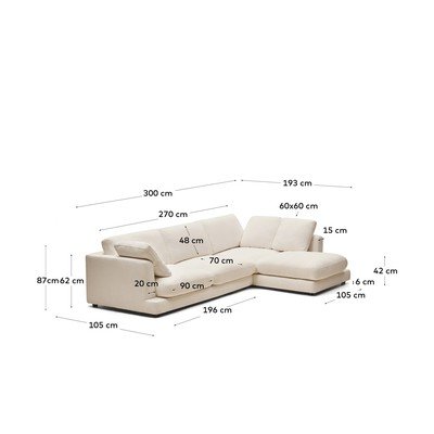 Z tkaniny szenilowejPrawostronny/z szezlongiemBeżowyPlamoodpornyCzteroosobowySzerokość 300 cm