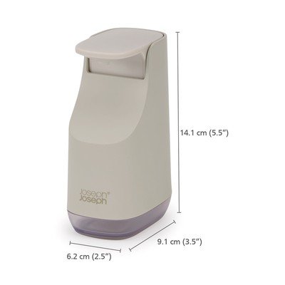 Dozownik do mydła Slim marki Joseph Joseph, dzięki swojej wąskiej konstrukcji, świetnie sprawdzi się nawet w mniejszych przestrzeniach. Zajmuje mniej miejsca niż standardowe dozowniki, a jednocześnie oferuje sporą pojemność 350 ml.
