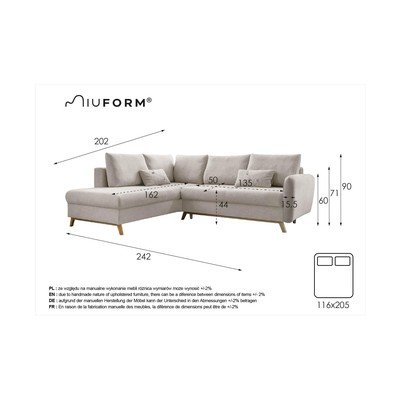 Narożnik Scandic LagomRozkładany/ze schowkiem, lewostronny/w kształcie litery L, beżowy, czteroosobowy, szerokość 242 cm, głębokość 202 cm, głębokość siedziska 50 cm