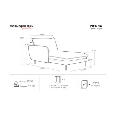 Ciemnoszary szezlong Cosmopolitan Design Vienna, lewostronny