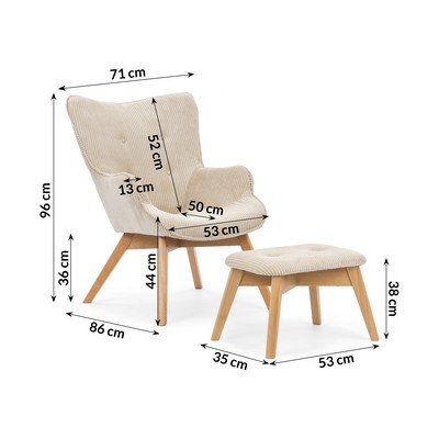 Beżowy sztruksowy fotel z podnóżkiem Niko – Ropez