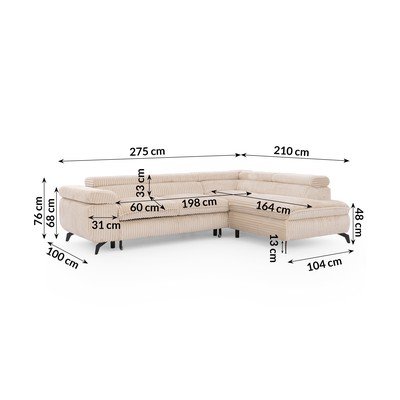 SztruksowyCzęściowo rozkładany/rozkładany/ze schowkiemPrawostronny/w kształcie litery LBeżowyOdpowiedni dla zwierząt domowych/plamoodpornyCzteroosobowySzerokość 275 cm