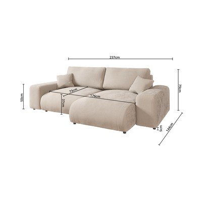 Sztruksowy, prawostronny/lewostronny/strona zmienna/z szezlongiem, beżowy, trzyosobowy, szerokość 237 cm