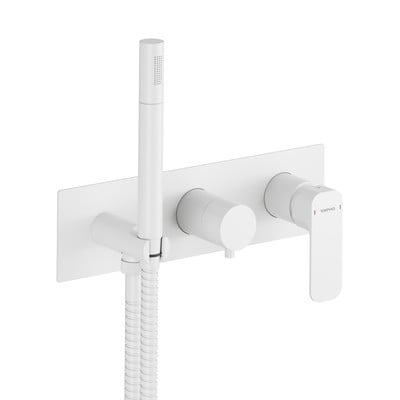 Mosiężna bateria podtynkowa została zaprojektowana z myślą o dwóch wyjściach, dzięki czemu można ją podłączyć na przykład do deszczownicy i słuchawki prysznicowej. Można je wygodnie przełączać za pomocą zintegrowanego przełącznika. Posiada wkład o średnicy 35 mm, słuchawkę prysznicową i wąż o długości 150 cm.