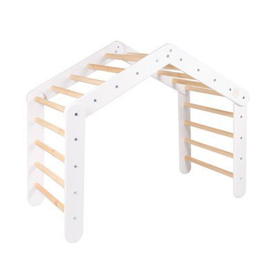 Drabinka pikler Montessori marki Meowbaby. Modułowa konstrukcja pozwala na zbudowanie jednego dużego domku lub dwóch mniejszych drabinek.