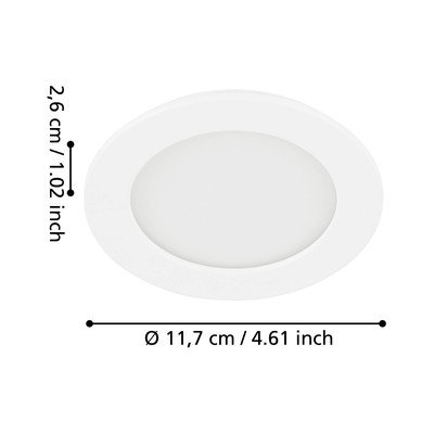 LED, z plastikowym kloszem, metalowa/plastikowa, biała, ø 12 cm, wysokość 3 cm