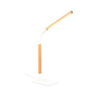 Lampa stołowa NorrisLED, z elastyczną konstrukcją/ze ściemniaczem, z drewnianym kloszem, drewniana/metalowa, do kontaktu, biała/w naturalnym kolorze, wysokość 73,5 cm