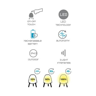 LED, plastikowa, na baterie/na USB, ze ściemniaczem, stołowa, wysokość 20 cm